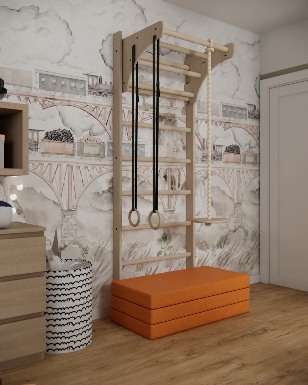 Projekt tego pokoju dziecięcego powstał z myślą o 4 – letnim chłopcu, którego największą pasją są pociągi. Życzeniem rodziców było stworzenie wnętrza, które subtelnie nawiązuje do zainteresowań dziecka, a jednocześnie będzie przestrzenią funkcjonalną, spokojną i ponadczasową.